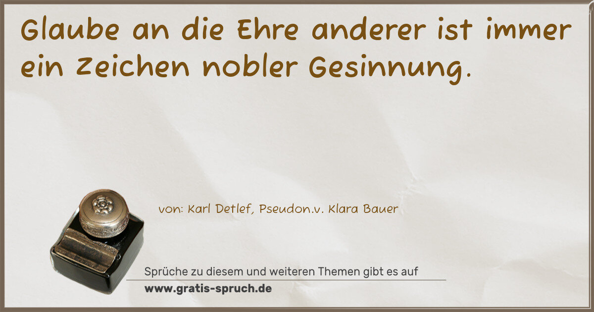 Glaube an die Ehre anderer ist immer ein Zeichen nobler Gesinnung.