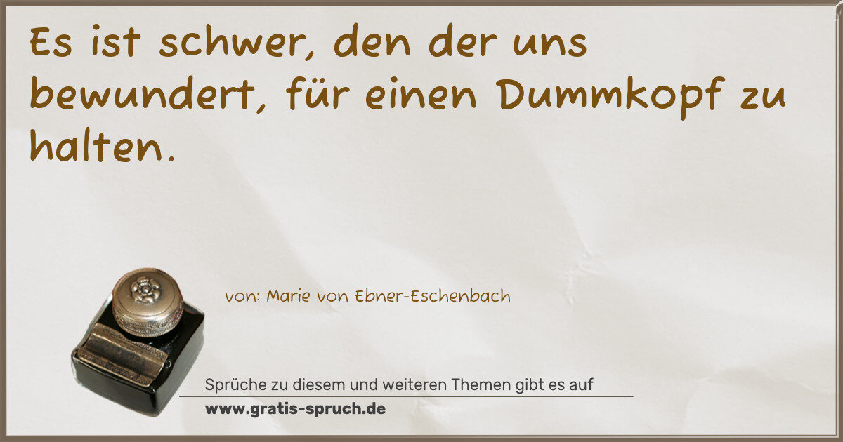 Es ist schwer, den der uns bewundert, für einen Dummkopf zu halten.