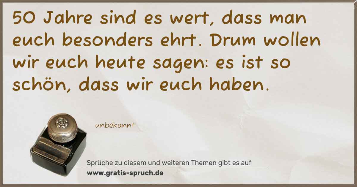 Spruchbild: 50 Jahre sind es wert, dass man euch besonders ehrt. Drum wollen wir euch heute sagen: es  …