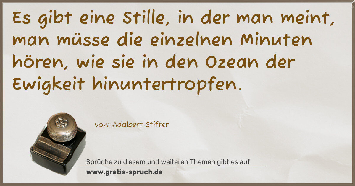Es gibt eine Stille, in der man meint, man müsse die einzelnen Minuten hören, wie sie in den Ozean der Ewigkeit hinuntertropfen.