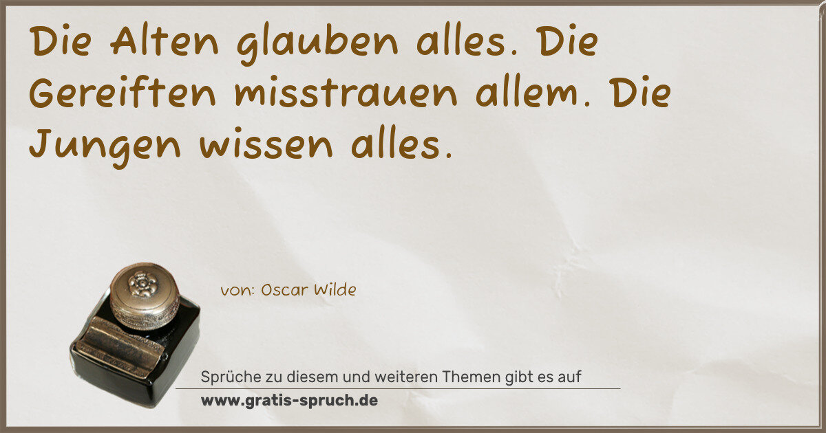 Die Alten glauben alles. Die Gereiften misstrauen allem. Die Jungen wissen alles.