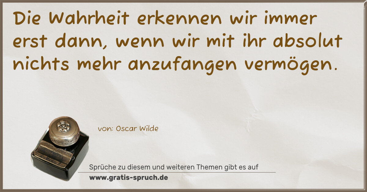 Die Wahrheit erkennen wir immer erst dann, wenn wir mit ihr absolut nichts mehr anzufangen vermögen.