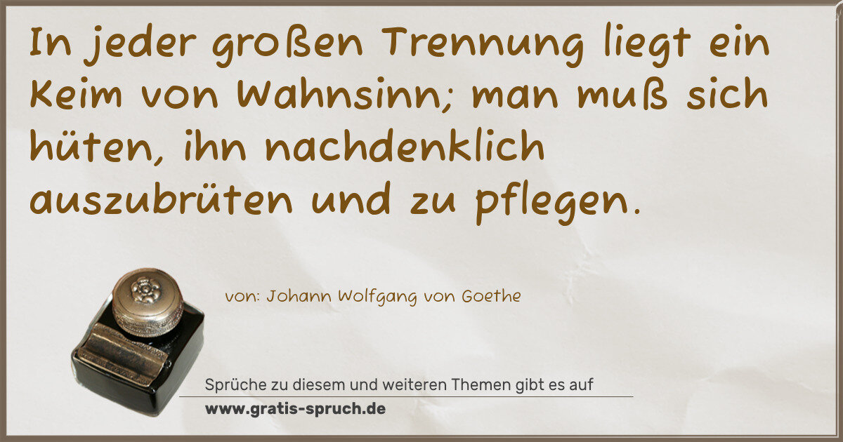 In jeder großen Trennung liegt ein Keim von Wahnsinn; man muß sich hüten, ihn nachdenklich auszubrüten und zu pflegen.