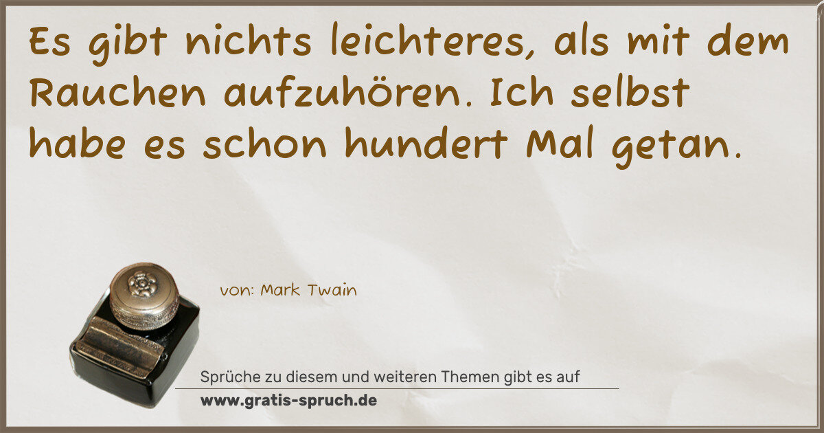 Es gibt nichts leichteres, als mit dem Rauchen aufzuhören. Ich selbst habe es schon hundert Mal getan.