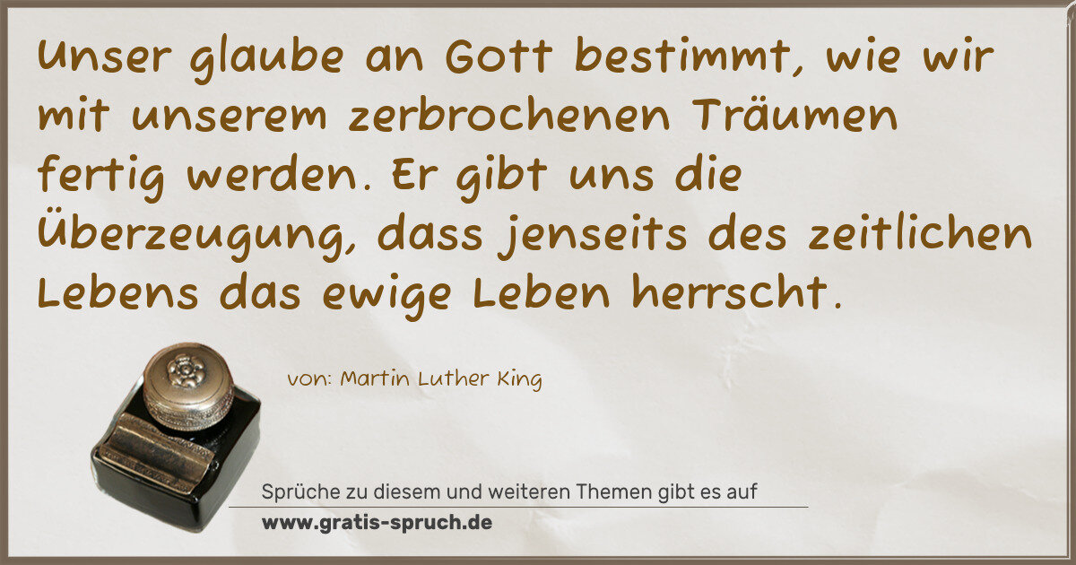 Unser glaube an Gott bestimmt, wie wir mit unserem zerbrochenen Träumen fertig werden. Er gibt uns die Überzeugung, dass jenseits des zeitlichen Lebens das ewige Leben herrscht.
