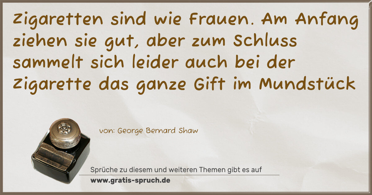 Zigaretten sind wie Frauen. Am Anfang ziehen sie gut, aber zum Schluss sammelt sich leider auch bei der Zigarette das ganze Gift im Mundstück