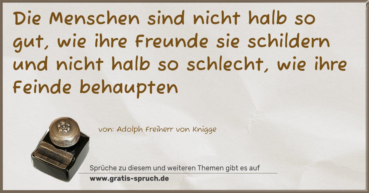 Die Menschen sind nicht halb so gut, wie ihre Freunde sie schildern und nicht halb so schlecht, wie ihre Feinde behaupten