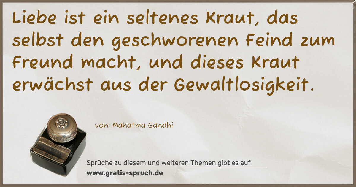 Liebe ist ein seltenes Kraut, das selbst den geschworenen Feind zum Freund macht, und dieses Kraut erwächst aus der Gewaltlosigkeit.
