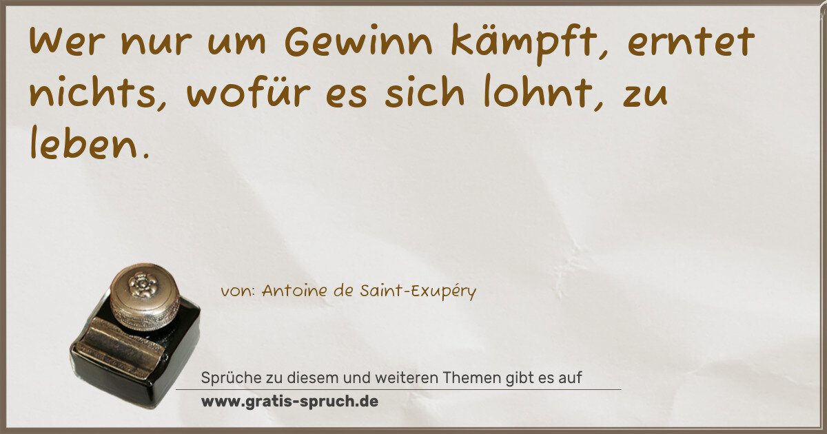 Wer nur um Gewinn kämpft, erntet nichts, wofür es sich lohnt, zu leben.