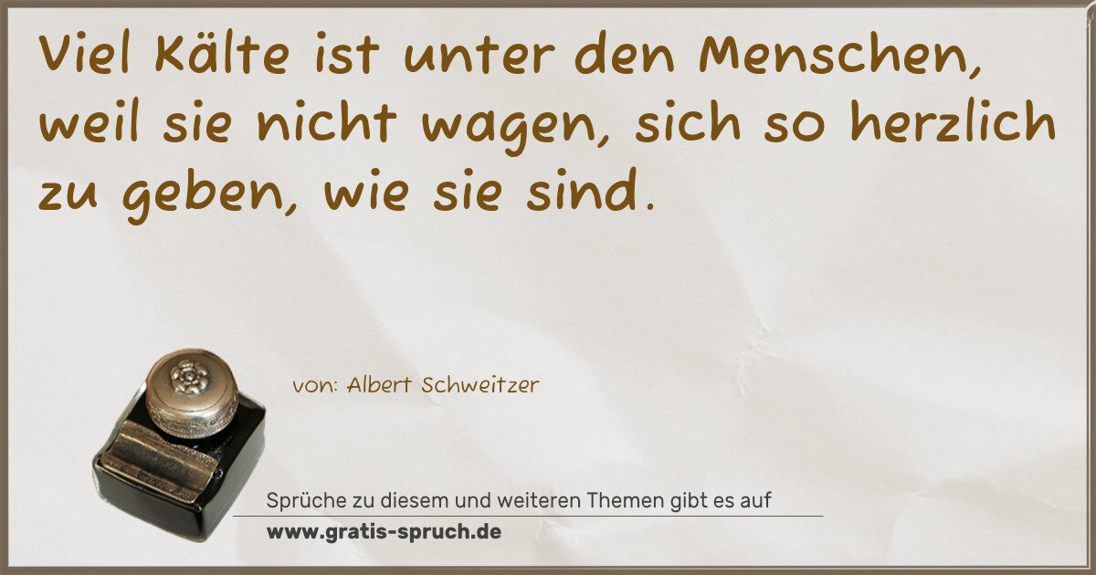 Viel Kälte ist unter den Menschen, weil sie nicht wagen, sich so herzlich zu geben, wie sie sind.