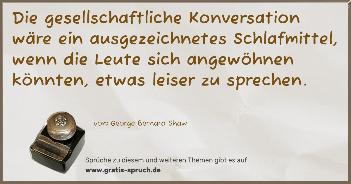 Die gesellschaftliche Konversation wäre ein ausgezeichnetes Schlafmittel, wenn die Leute sich angewöhnen könnten, etwas leiser zu sprechen.