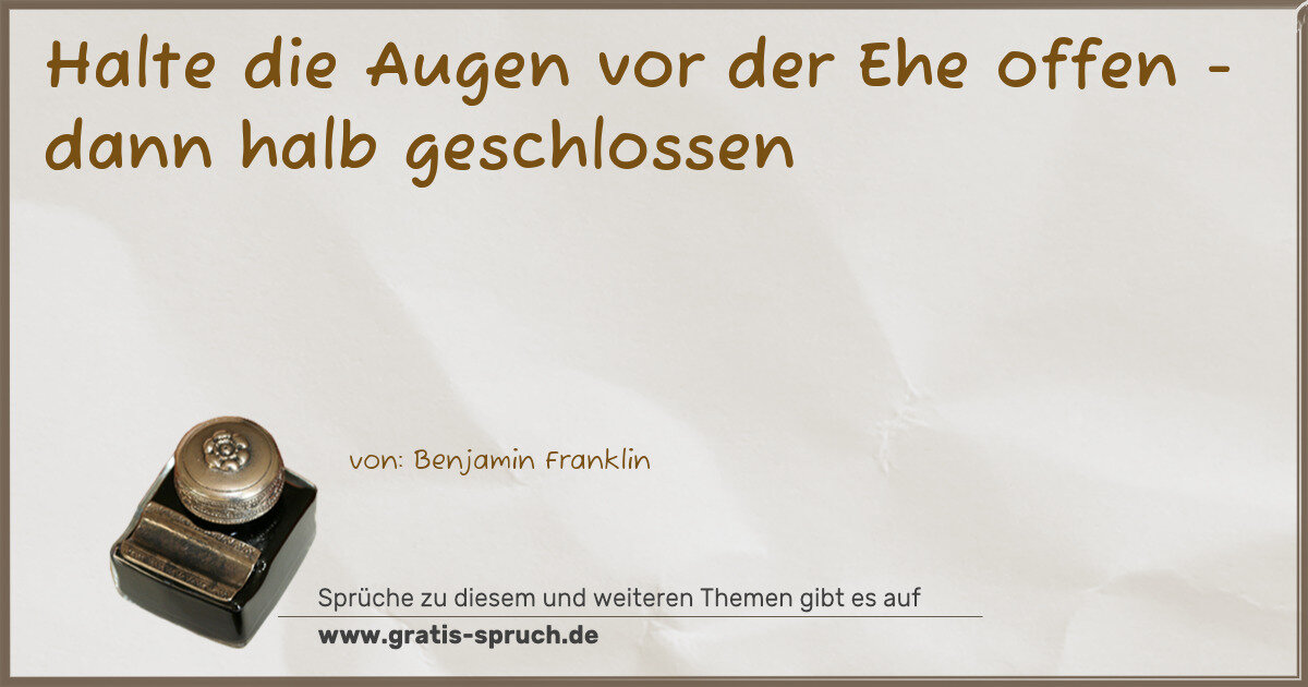 Halte die Augen vor der Ehe offen - dann halb geschlossen