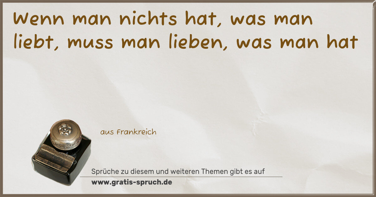 Wenn man nichts hat, was man liebt, muss man lieben, was man hat