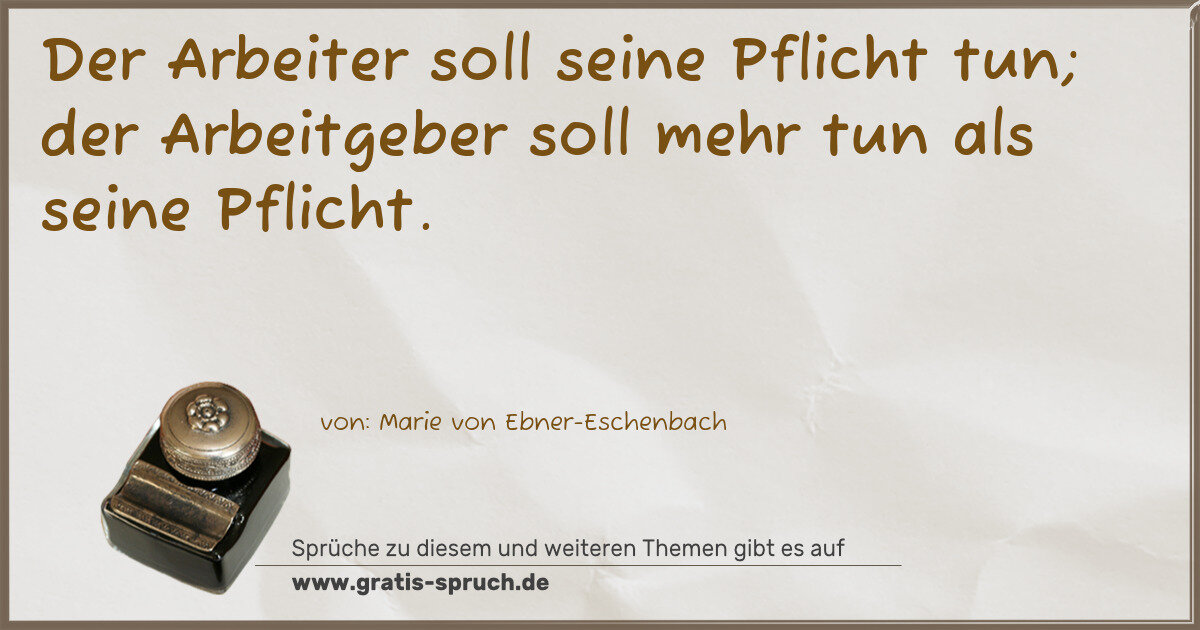 Der Arbeiter soll seine Pflicht tun; der Arbeitgeber soll mehr tun als seine Pflicht.