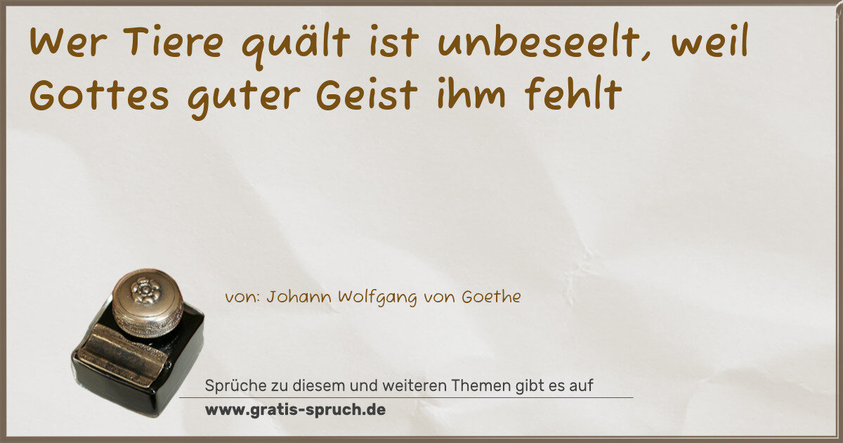 Wer Tiere quält ist unbeseelt, weil Gottes guter Geist ihm fehlt